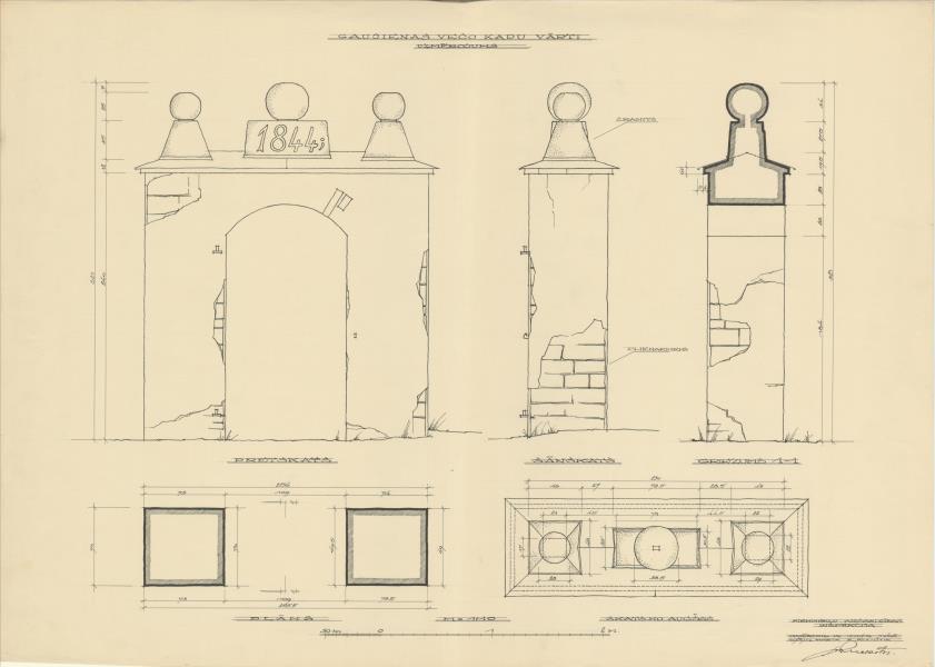 Vulfu dzimtas kapu vārti. Veco kapu vārti (Apes novads, Gaujienas pagasts. Gaujiena.)
