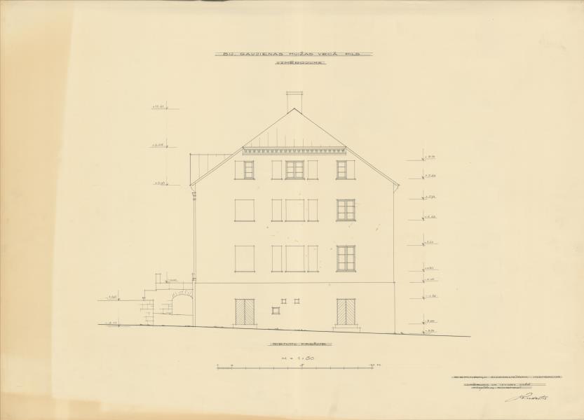 Gaujienas muižas apbūve. Muižkunga māja, rietumu fasāde (Apes novads, Gaujienas pagasts. Gaujiena. Muižkungi.)