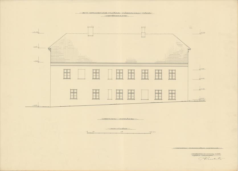 Gaujienas muižas apbūve. Dārznieka māja, dienvidu fasāde (Apes novads, Gaujienas pagasts. Gaujiena. Ābeles.)