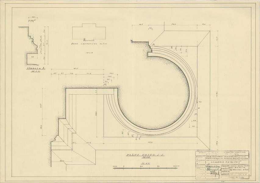 Academia Petrina. Ielas fasādes rizalīta 3/4 kolonnas bāze, detaļa ( Jelgava. Akadēmijas iela 10.)