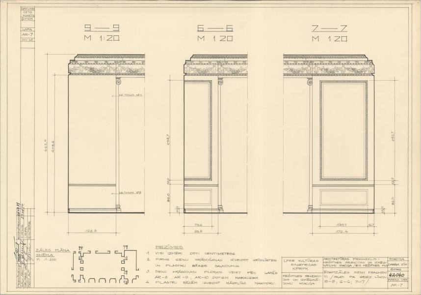 Mežotnes muižas pils. Interjera apdare, ēdamzāle, sienu fragments (Bauskas novads, Mežotnes pagasts. Mežotne. Pils iela 1.)