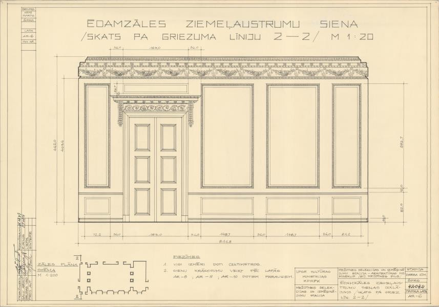 Mežotnes muižas pils. Interjera apdare, ēdamzāle, ziemeļaustrumu sienas izklājums (Bauskas novads, Mežotnes pagasts. Mežotne. Pils iela 1.)