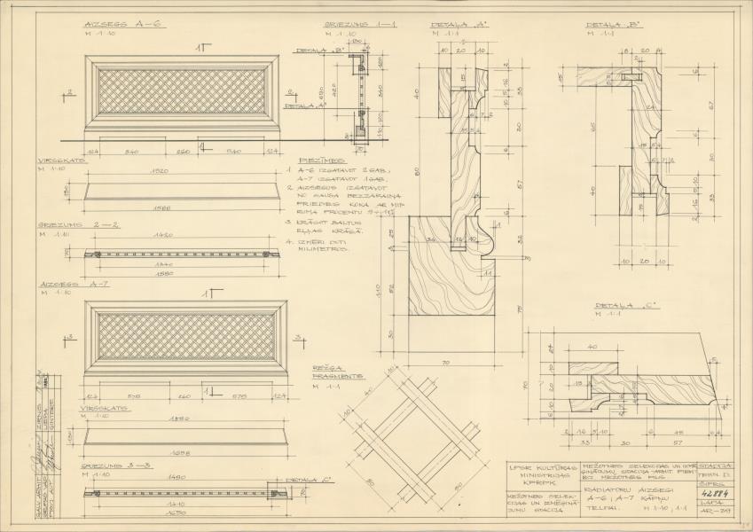 Mežotnes muižas pils. Kāpņu telpa, radiatoru aizsegi (Bauskas novads, Mežotnes pagasts. Mežotne. Pils iela 1.)