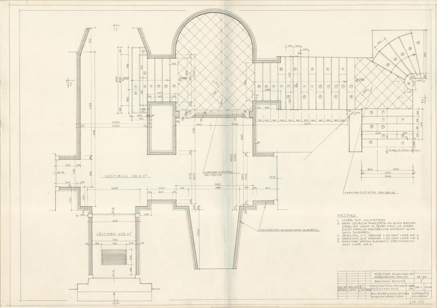 Mežotnes muižas pils. Vestibils, galvenās kāpnes (Bauskas novads, Mežotnes pagasts. Mežotne. Pils iela 1.)