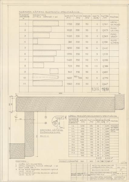 Mežotnes muižas pils. Galveno marmora kāpienu elementu specefikācija (Bauskas novads, Mežotnes pagasts. Mežotne. Pils iela 1.)