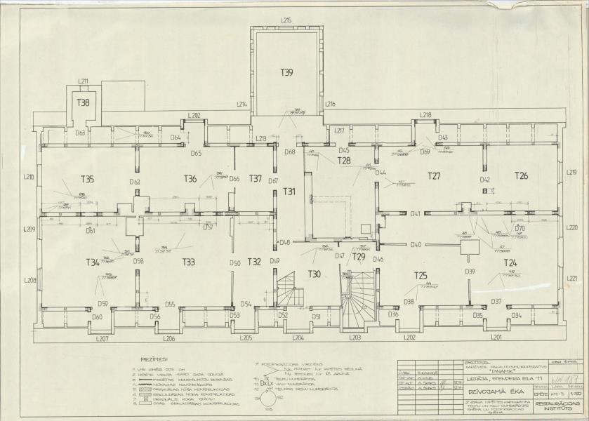 Dzīvojamā ēka. 2. stāva izpētes kartogramma telpu ailu numerācijas shēmas un fotofiksācijas shēma ( Liepāja. Stendera iela 11.)