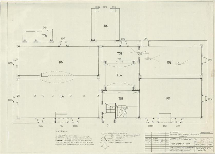 Dzīvojamā ēka. Cokola stāva izpētes kartogramma telpu ailu numerācijas shēmas un fotofiksācijas shēma ( Liepāja. Stendera iela 11.)