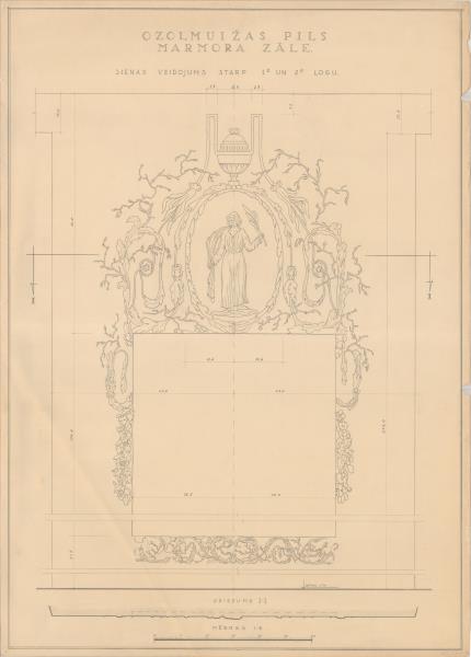 Ozolmuižas pils. Marmora zāle. Sienas veidojums starp 1. un 2. logu (Alojas novads, Brīvzemnieku pagasts. Ozolmuiža. Ozolmuižas pils.)