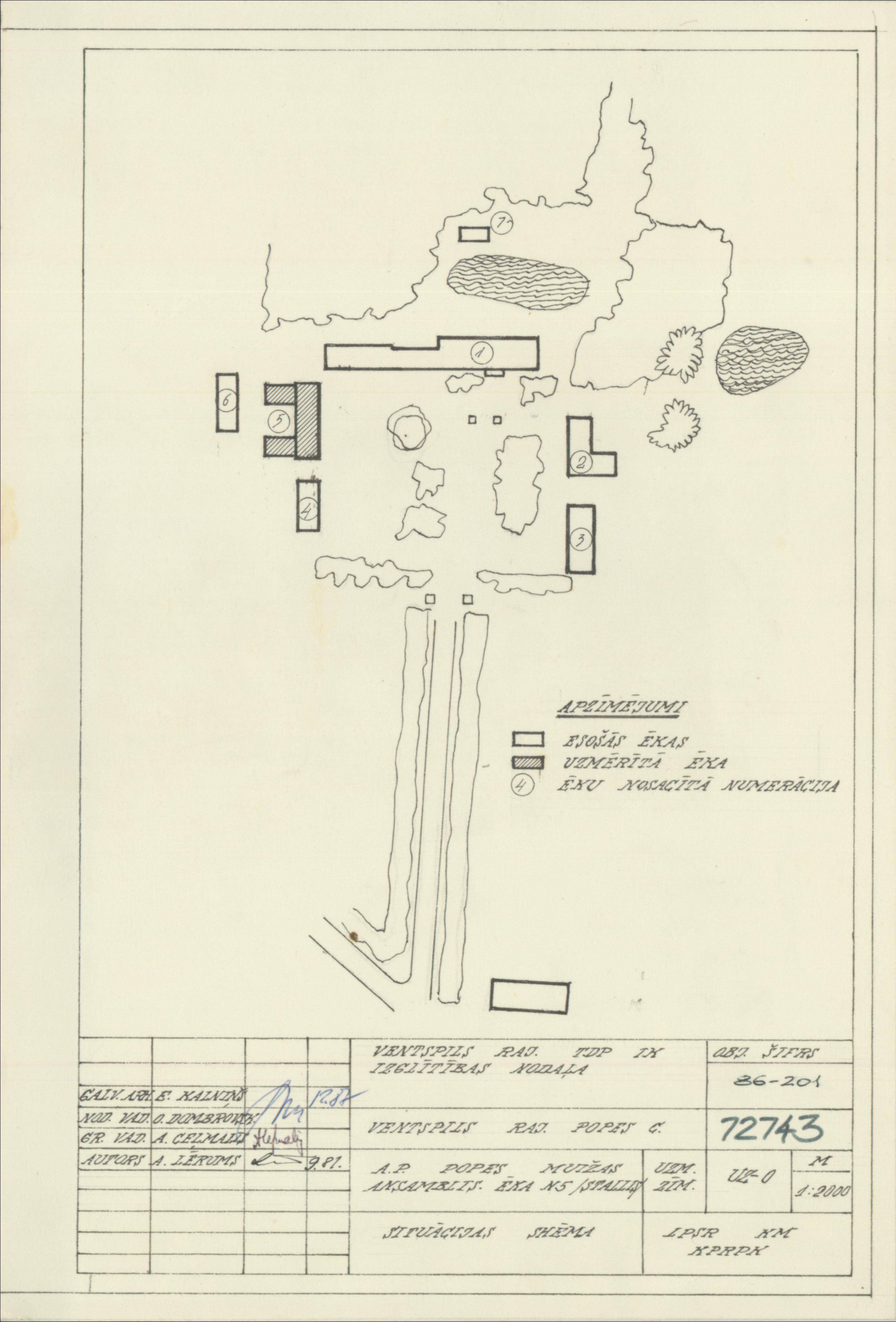 Popes muižas apbūve. Situācijas shēma (Ventspils novads, Popes pagasts. Pope.)