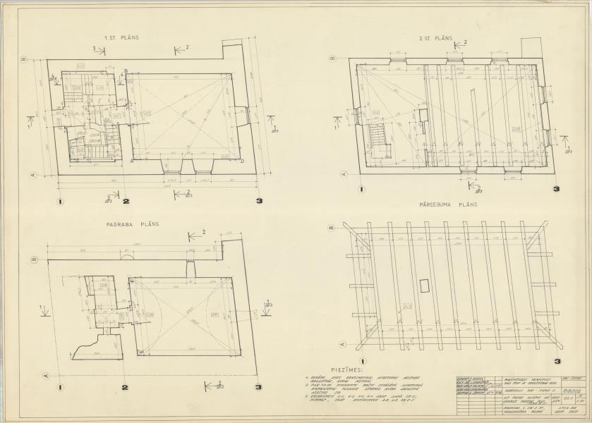 Popes muižas apbūve. Medību pils. Pagrabā, 1. stāva un 2. stāva pārsegmumi (Ventspils novads, Popes pagasts. Pope. Popes pamatskola.)