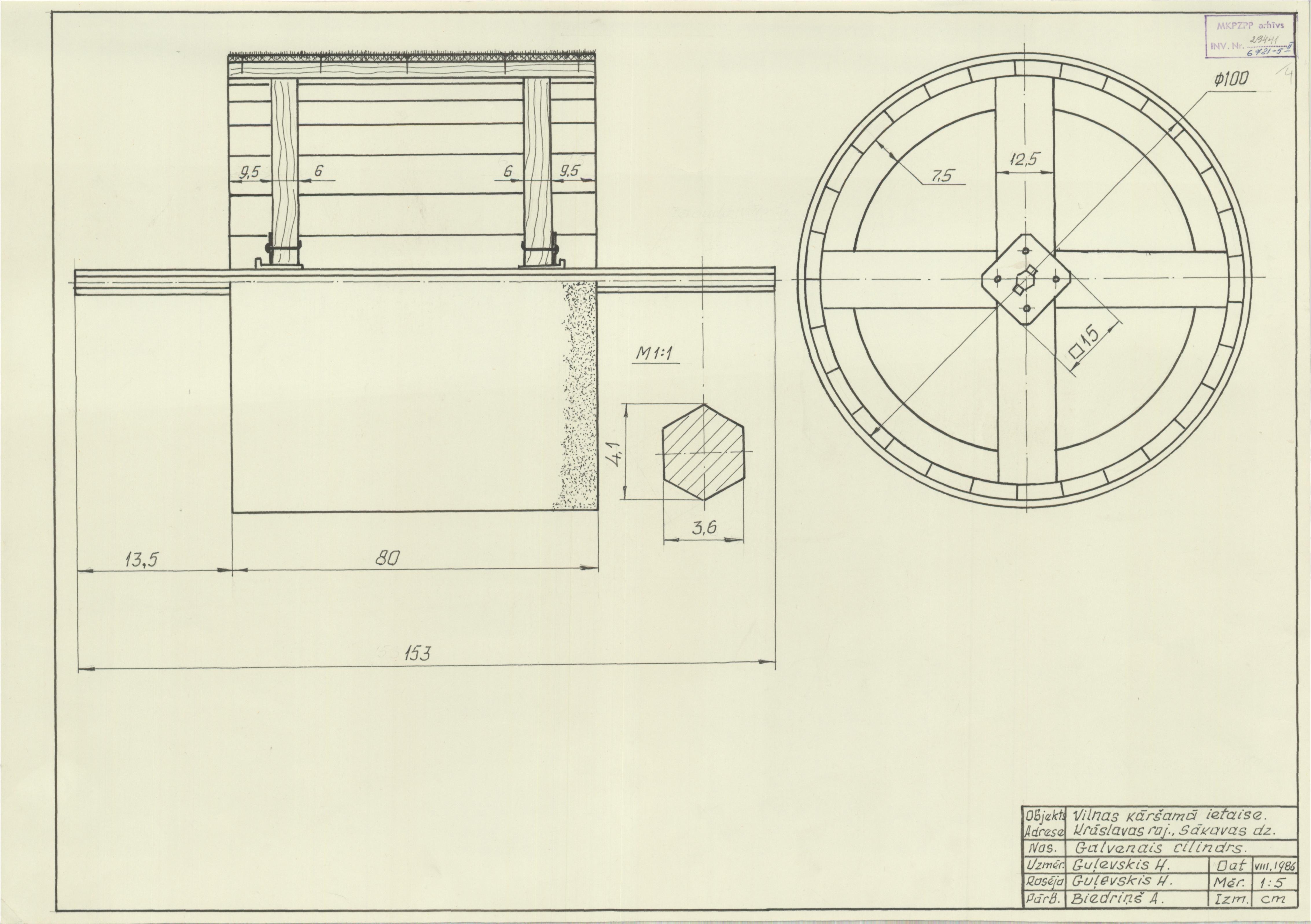 Sakovas (Sākavas) ūdendzirnavas. Vilnas kāršamā ietaise, galvenais cilindrs (Aglonas novads, Grāveru pagasts. Sakova.)