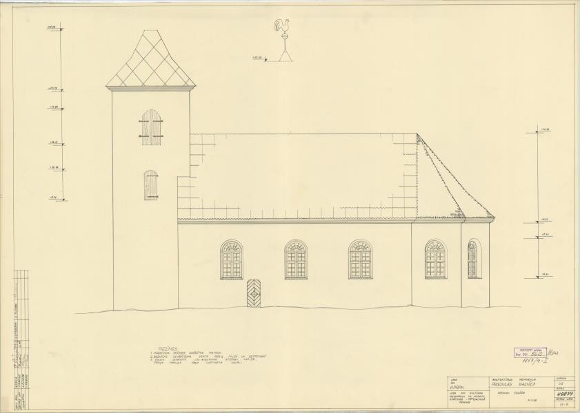 Priedulas baznīca. Dienvidu fasāde (Saldus novads, Vadakstes pagasts. Priedulas Vadakstes baznīca.)
