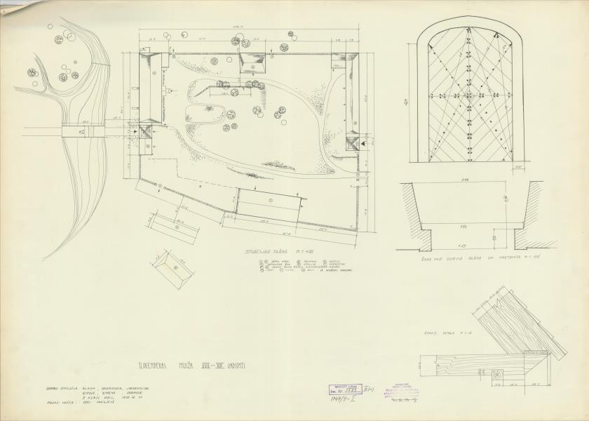Šlokenbekas muižas apbūve. Situācija, klēts durvis, lielās ratnīcas detaļa (Engures novads, Smārdes pagasts. Milzkalne. Šlokenbekas muižas ansamblis.)