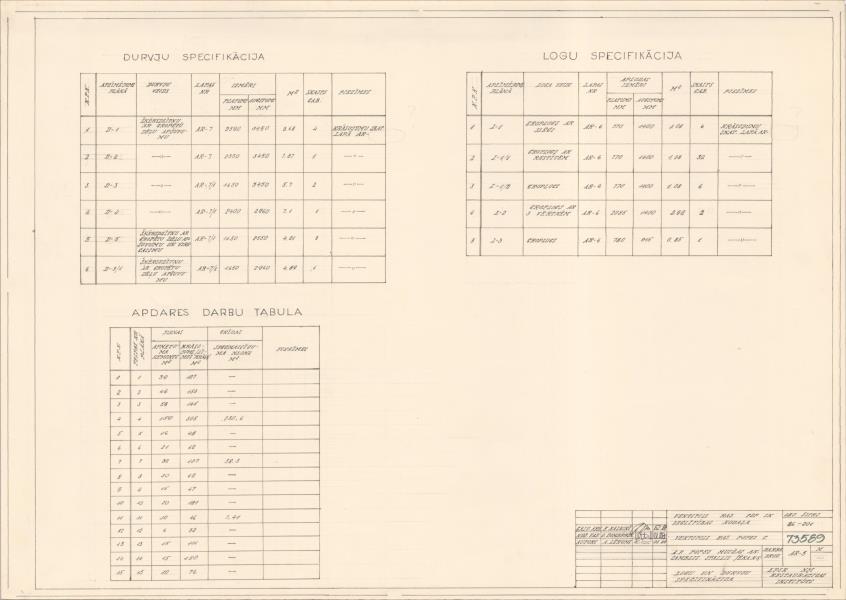 Popes muižas apbūve. Stallis. Logu un durvju specifikācija (Ventspils novads, Popes pagasts. Pope. Popes pamatskola.)