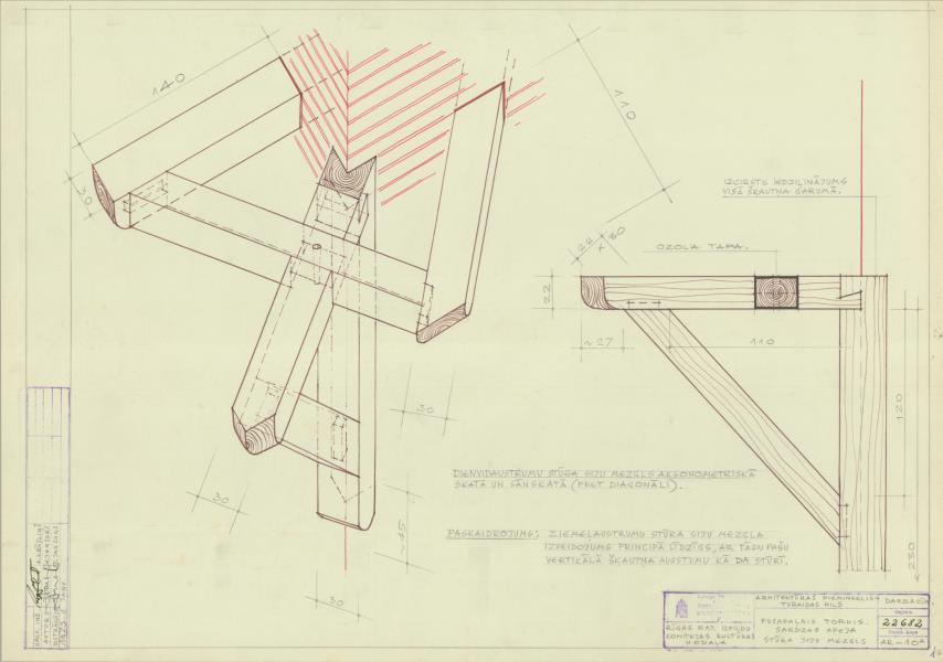 Turaidas pilskalns un viduslaiku pils. Pusapaļais tornis; sardzes apejas stūra siju mezgls (Siguldas novads, Sigulda. Turaidas iela 10.)