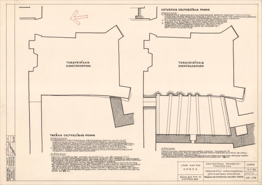 Turaidas pilskalns un viduslaiku pils. Dienvidu korpuss; Celtniecības evolūcija (Siguldas novads, Sigulda. Turaidas iela 10.)