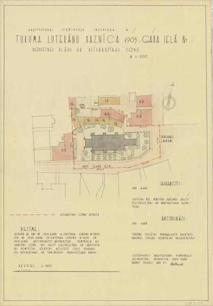 Tukuma luterāņu baznīca. Novietnes plāns ar aizsardzības zonu (Tukuma novads, Tukums. Brīvības laukums 1.)
