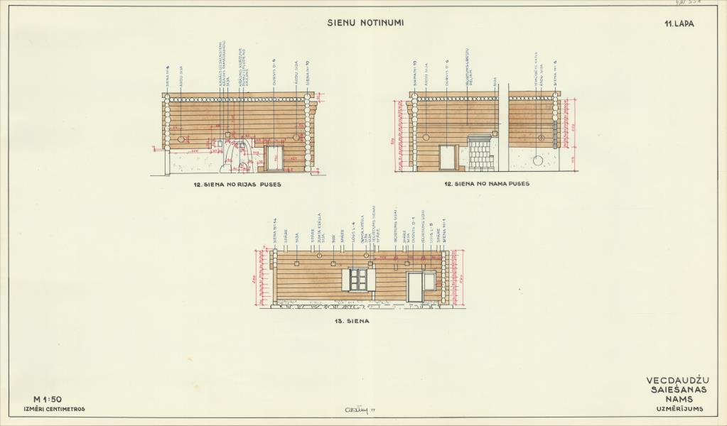 Vecdaudžu saiešanas nams. Sienas (Beverīnas novads, Brenguļu pagasts. Vecdaudži.)