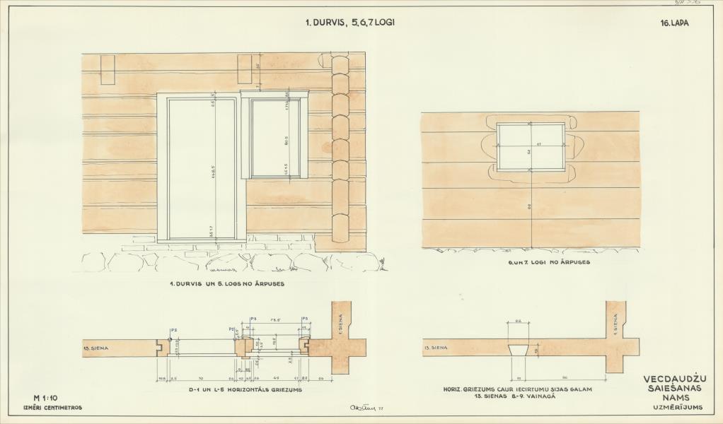 Vecdaudžu saiešanas nams. Durvis, logs (Beverīnas novads, Brenguļu pagasts. Vecdaudži.)