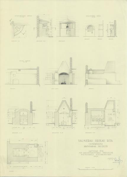 Latvijas etnogrāfiskais brīvdabas muzejs celtņu komplekss. Valmieras skolas rija, kamīns, krāsns ( Rīga. Bonaventuras iela 10.)