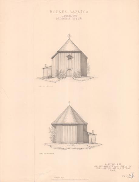 Latvijas etnogrāfiskais brīvdabas muzejs celtņu komplekss. Bornes baznīca, fasādes ( Rīga. Bonaventuras iela 10.)