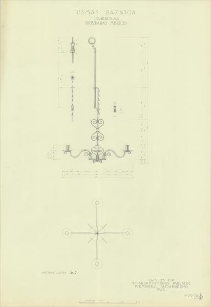 Latvijas etnogrāfiskais brīvdabas muzejs celtņu komplekss. Usmas baznīca, svečturis, lustra ( Rīga. Bonaventuras iela 10.)