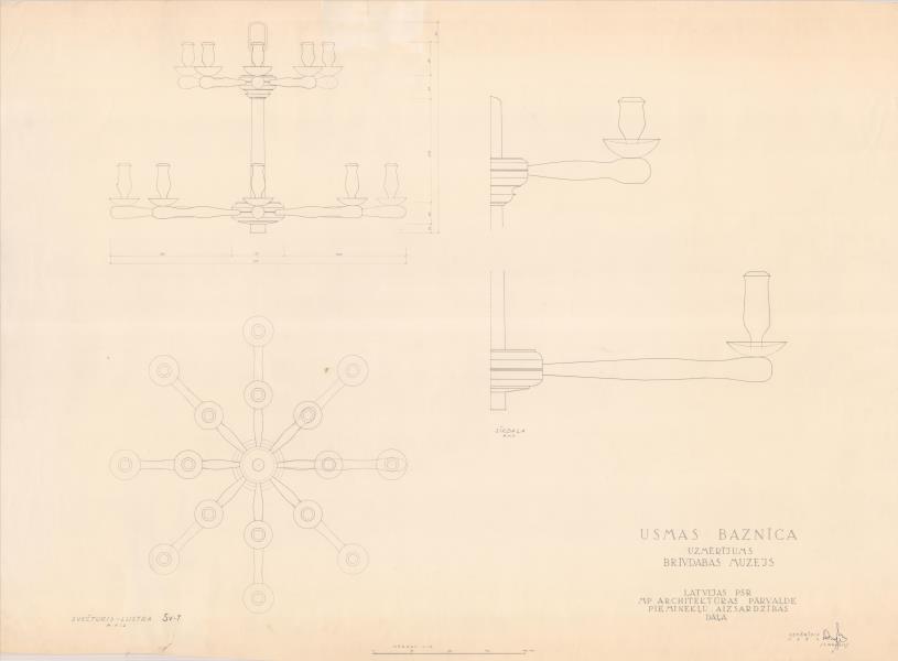 Latvijas etnogrāfiskais brīvdabas muzejs celtņu komplekss. Usmas baznīca, svečturis lustra ( Rīga. Bonaventuras iela 10.)