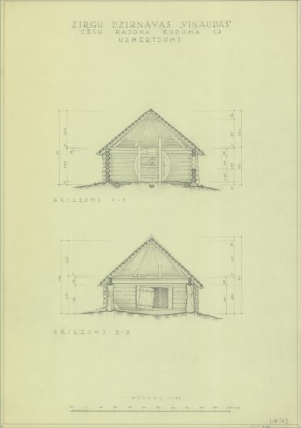 Latvijas etnogrāfiskais brīvdabas muzejs celtņu komplekss. Zirgu dzirnavas no Stalbes pagasta "Vīņaudos". ( Rīga. Bonaventuras iela 10.)
