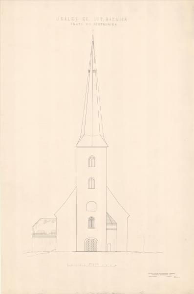 Ugāles luterāņu baznīca. Rietumu fasāde (Ventspils novads, Ugāles pagasts. Ugāle. Evanģēliski luteriskā baznīca.)