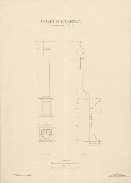 Ugāles luterāņu baznīca. Kolonnas zem luktām (Ventspils novads, Ugāles pagasts. Ugāle. Evanģēliski luteriskā baznīca.)