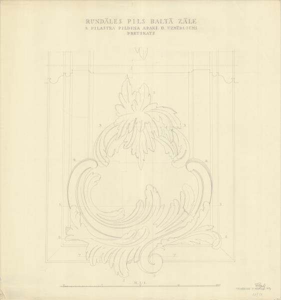 Rundāles pils. Baltā zāle, 8.pilastra pildiņa apakšējā daļa (Rundāles novads, Rundāles pagasts. Pilsrundāle. Rundāles pils.)