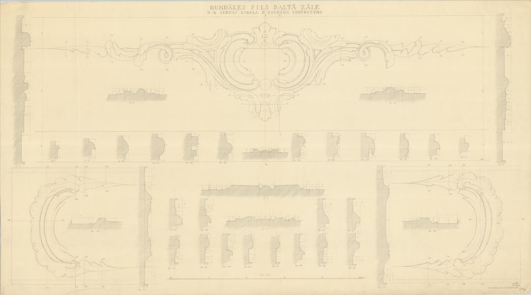 Rundāles pils. Baltā zāle, D-R sienas zokola 2.pildiņš (Rundāles novads, Rundāles pagasts. Pilsrundāle. Rundāles pils.)