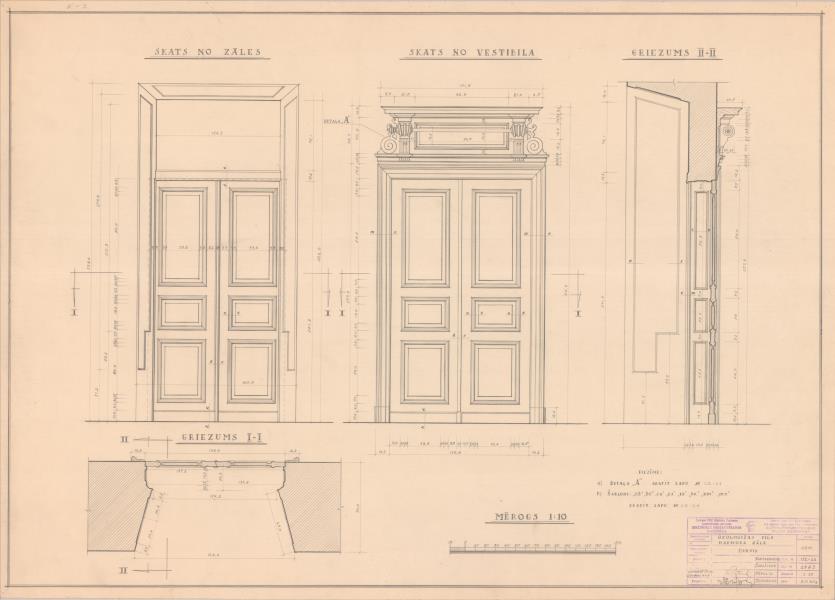 Ozolmuižas pils. Marmora zāle, durvis (Alojas novads, Brīvzemnieku pagasts. Ozolmuiža. Ozolmuižas pils.)