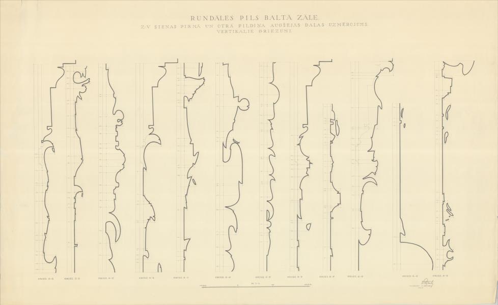 Rundāles pils. Baltā zāle, ZR sienas pirmā un otrā pildiņa augšējā daļa (Rundāles novads, Rundāles pagasts. Pilsrundāle. Rundāles pils.)