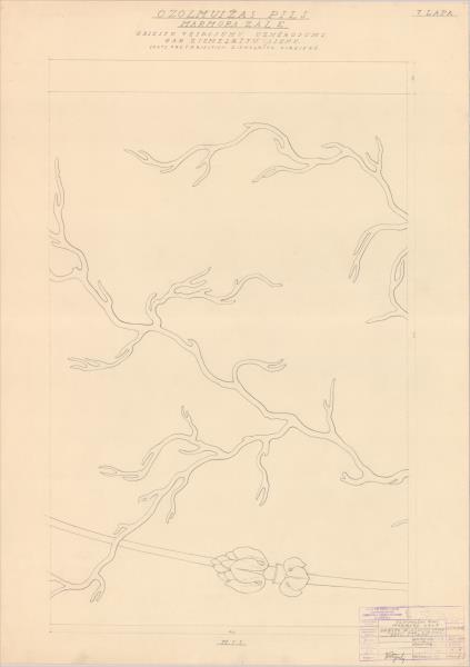 Ozolmuižas pils. Marmora zāle, griestu veidojums gar ZA sienu (Alojas novads, Brīvzemnieku pagasts. Ozolmuiža. Ozolmuižas pils.)