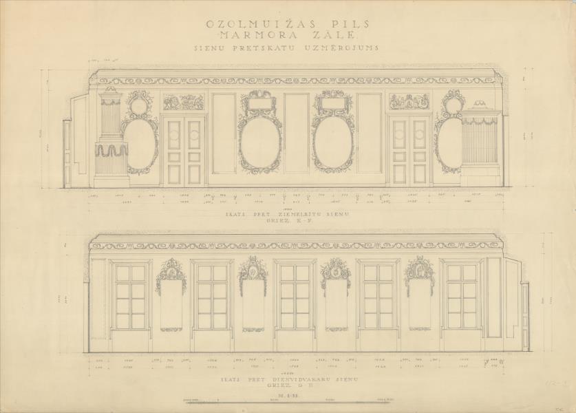 Ozolmuižas pils. Marmora zāle, sienas (Alojas novads, Brīvzemnieku pagasts. Ozolmuiža. Ozolmuižas pils.)