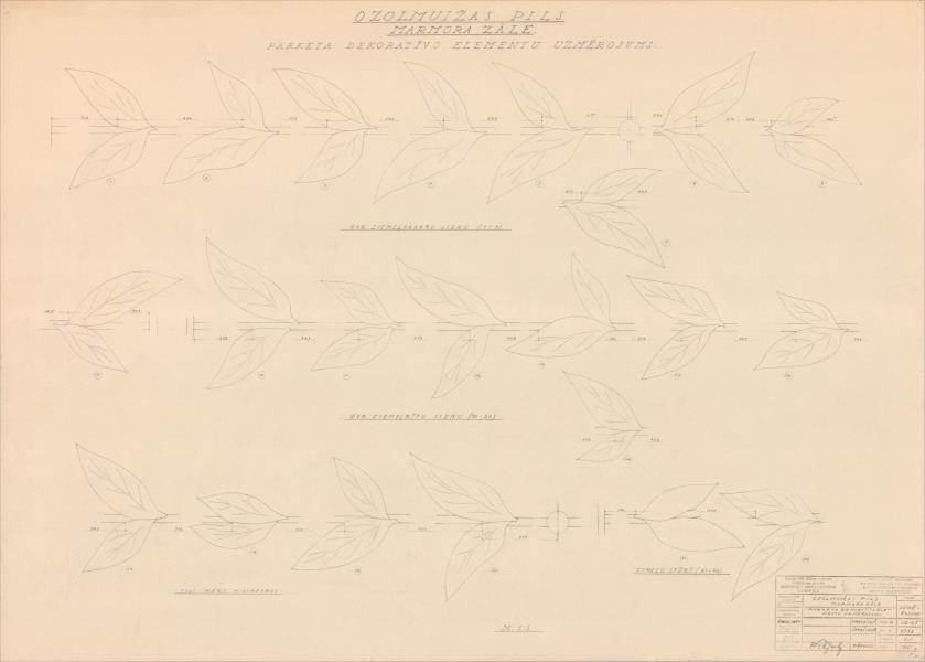 Ozolmuižas pils. Marmora zāle, parketa dekoratīvie elementi (Alojas novads, Brīvzemnieku pagasts. Ozolmuiža. Ozolmuižas pils.)