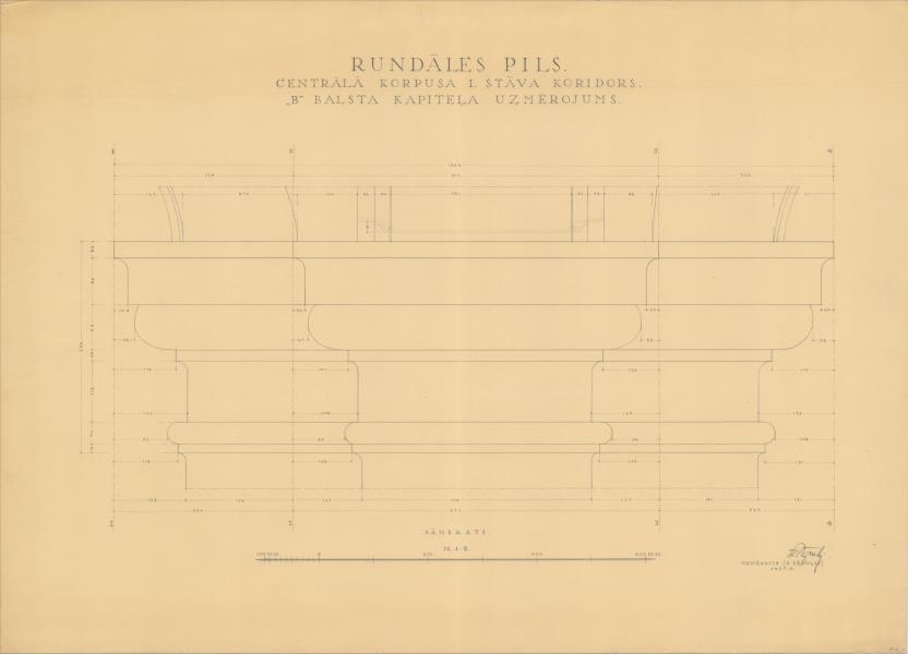 Rundāles pils. Centrālā korpusa 1. stāva koridors, B balsta kapitelis (Rundāles novads, Rundāles pagasts. Pilsrundāle. Rundāles pils.)