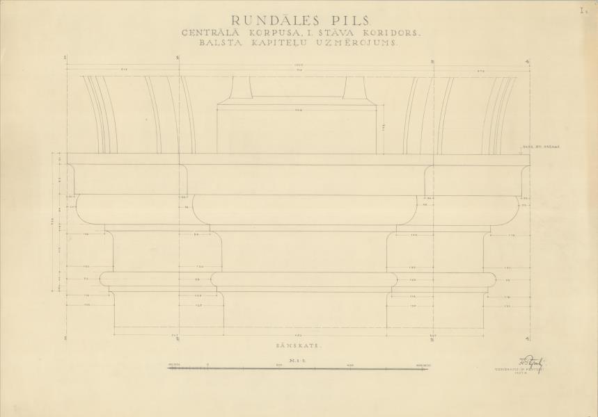 Rundāles pils. Centrālā korpusa 1. stāva koridors, balsta kapitelis (Rundāles novads, Rundāles pagasts. Pilsrundāle. Rundāles pils.)