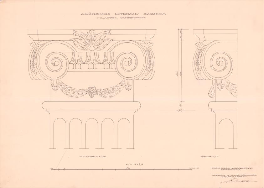 Alūksnes luterāņu baznīca. Pilastrs (Alūksnes novads, Alūksne. Pils iela 25.)