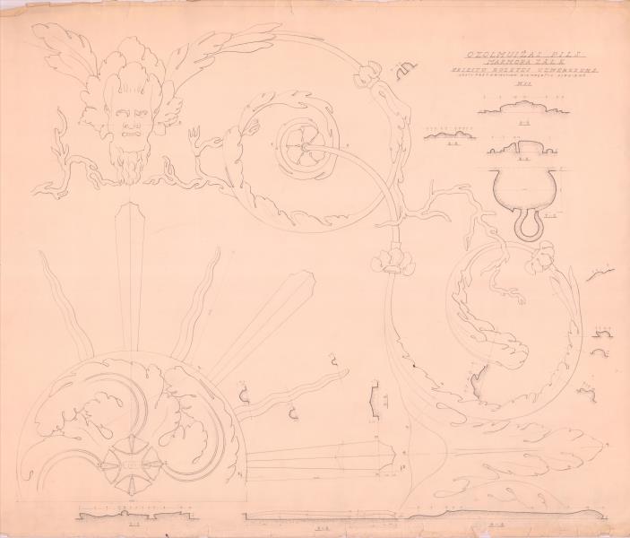 Ozolmuižas pils. Marmora zāle. Grieztu rozete (Alojas novads, Brīvzemnieku pagasts. Ozolmuiža. Ozolmuižas pils.)
