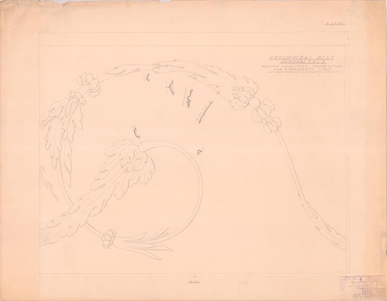 Ozolmuižas pils. Marmora zāle. Griestu veidojumi gar ziemeļaustrumu sienu (Alojas novads, Brīvzemnieku pagasts. Ozolmuiža. Ozolmuižas pils.)