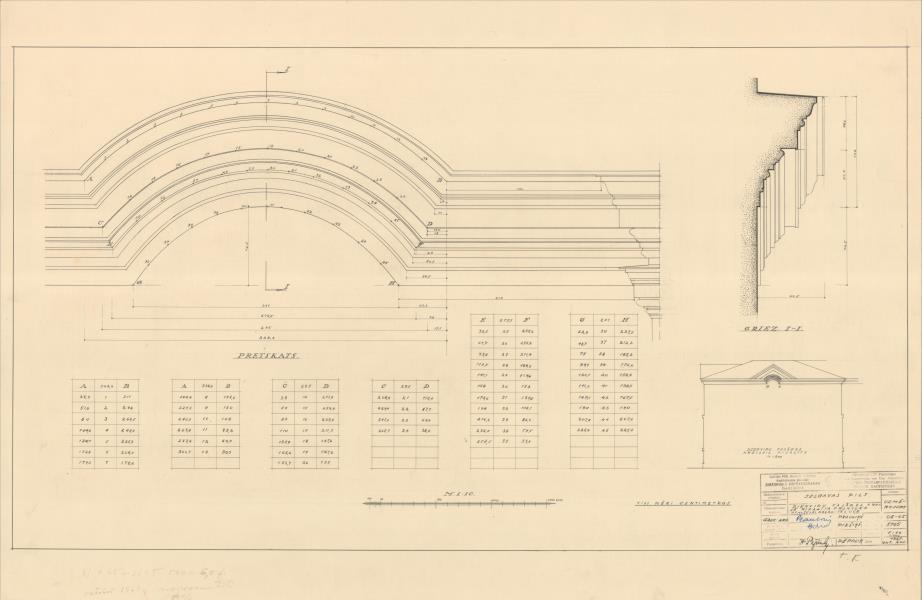Jelgavas pils. Dienvidu fasādes kreisā rizalīta frontona apakšējas daļas ieloce ( Jelgava. Lielā iela 2.)