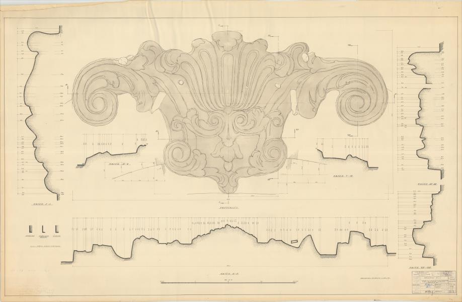 Jelgavas pils. Čuguna dekoratīvais veidojums virs balkona durvīm, detaļa ( Jelgava. Lielā iela 2.)