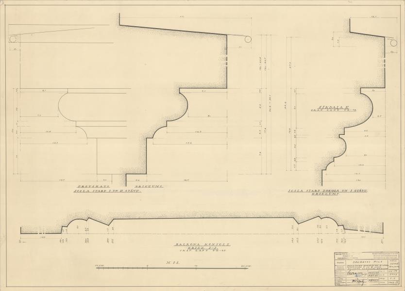 Jelgavas pils. Josla starp cokola (zokoļa) un 1. stāvu. Balkona konsoles griezums ( Jelgava. Lielā iela 2.)