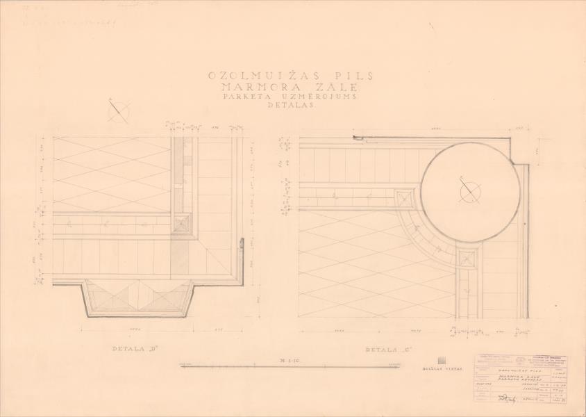 Ozolmuižas pils. Marmora zāle. Parketa detaļas (Alojas novads, Brīvzemnieku pagasts. Ozolmuiža. Ozolmuižas pils.)