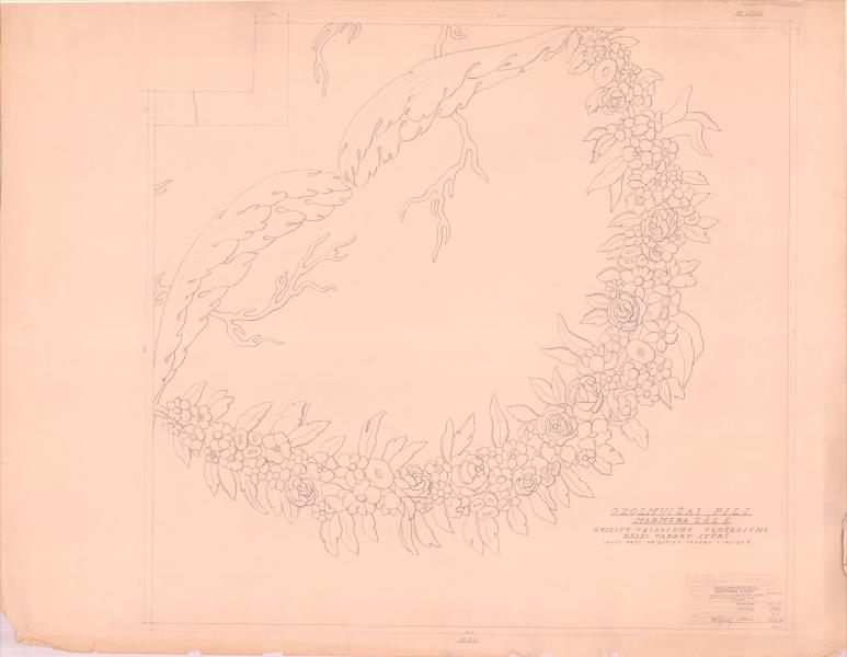 Ozolmuižas pils. Marmora zāle. Griestu veidojumi zāles rietumu stūrī (Alojas novads, Brīvzemnieku pagasts. Ozolmuiža. Ozolmuižas pils.)