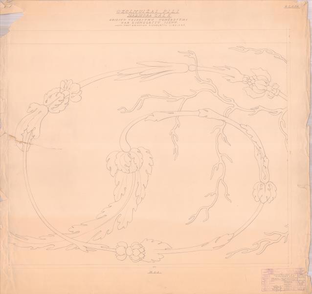 Ozolmuižas pils. Marmora zāle. Griestu veidojumi gar ziemeļaustrumu sienu (Alojas novads, Brīvzemnieku pagasts. Ozolmuiža. Ozolmuižas pils.)