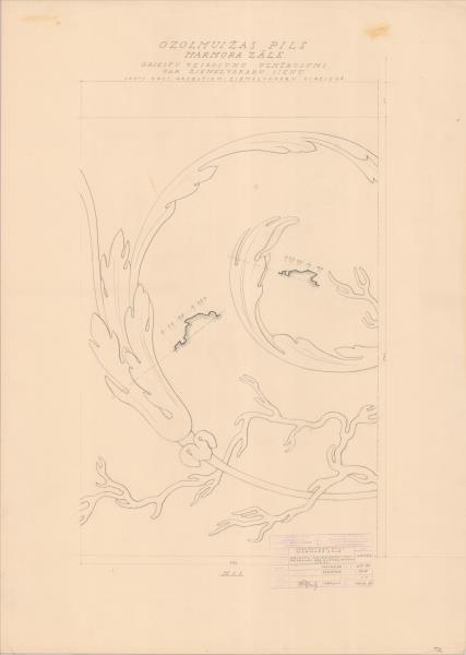 Ozolmuižas pils. Marmora zāle. Griestu veidojumi gar ziemeļrietumu sienu (Alojas novads, Brīvzemnieku pagasts. Ozolmuiža. Ozolmuižas pils.)