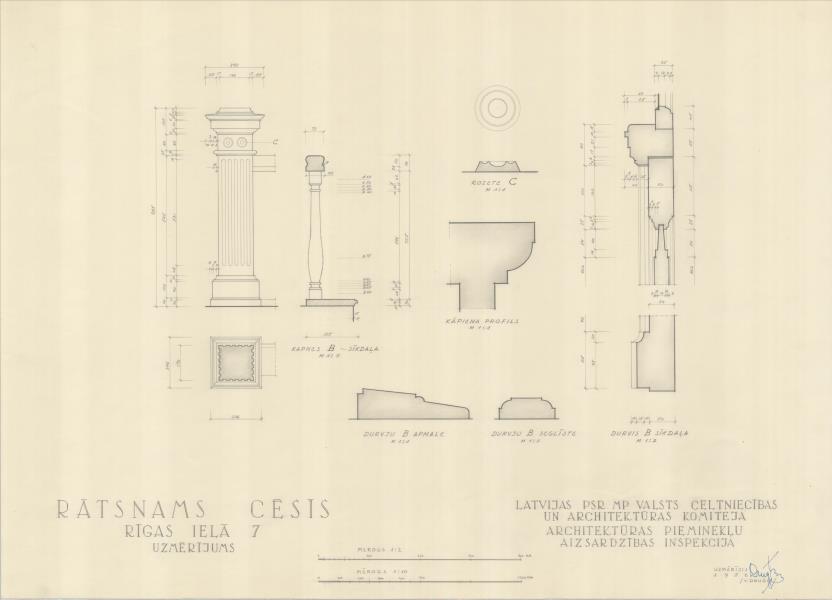 Rātsnams ar piebūvi un sarga mājiņu. Kāpnes, durvis, rozete, seglīste (Cēsu novads, Cēsis. Rīgas iela 7.)